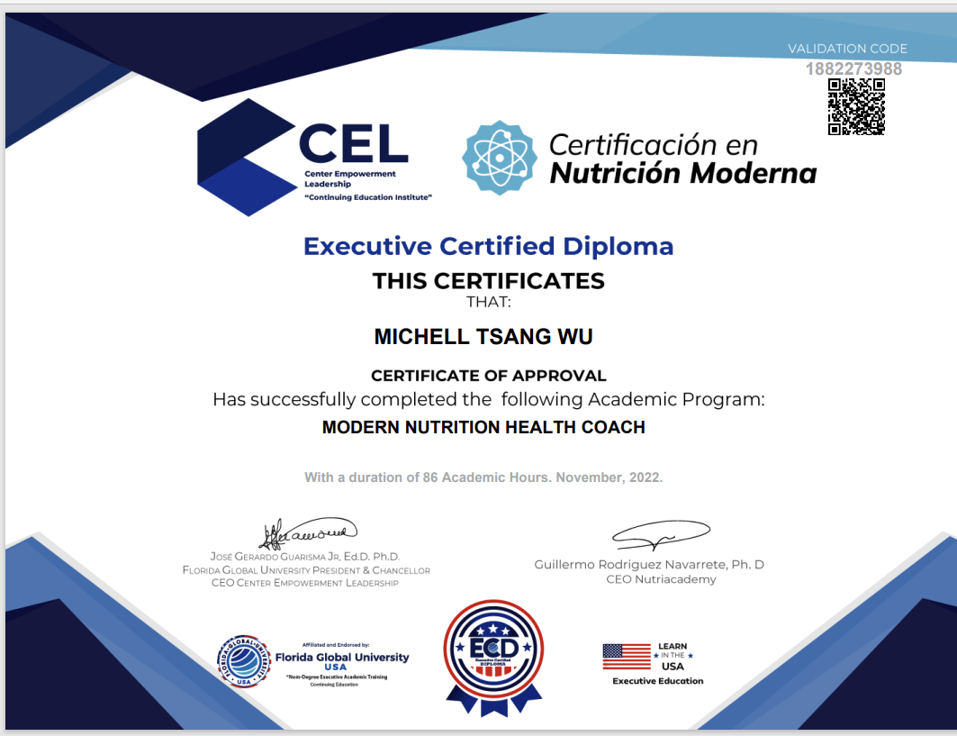 2022 Florida University – Modern Nutrition Health Coach